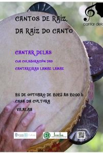 O domingo, 26 de outubro de 2025, ás 20:00 h tivo lugar, na Casa da Cultura de Vilalba, o concerto “Cantos de Raíz, da raíz do canto” coa participación das cantareiras Lambe, Lambe.